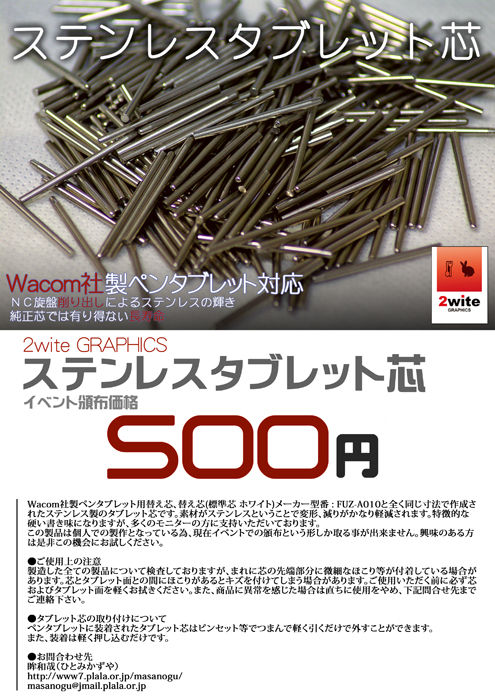 イベント頒布価格も加工工場に頑張ってもらい、ギリギリの500円/1本としています。